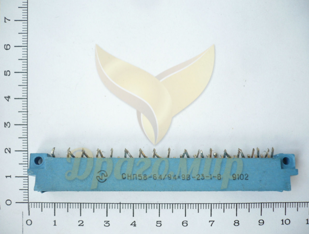 Вилка СНП 58-32 (Соединитель Ножевой прямоугольный Печатного монтажа) выполнена из пластика голубого цвета, имеет 32 контакта, расположенных в два ряда. Разъемы данного типа широко использовались в СССР в различной электронной аппаратуре, позволяя соединять вручную различные блоки. Для обеспечения надежной работы ламели покрывались тонким слоем золота, что и определяет их ценность.